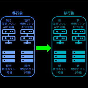 - 最新のWindows Server環境で新AD基盤を構築し、現行環境から段階的に移行。